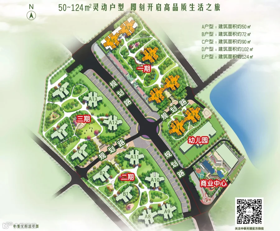 50-124㎡一房至四房精装刚需住宅产品,配套成熟