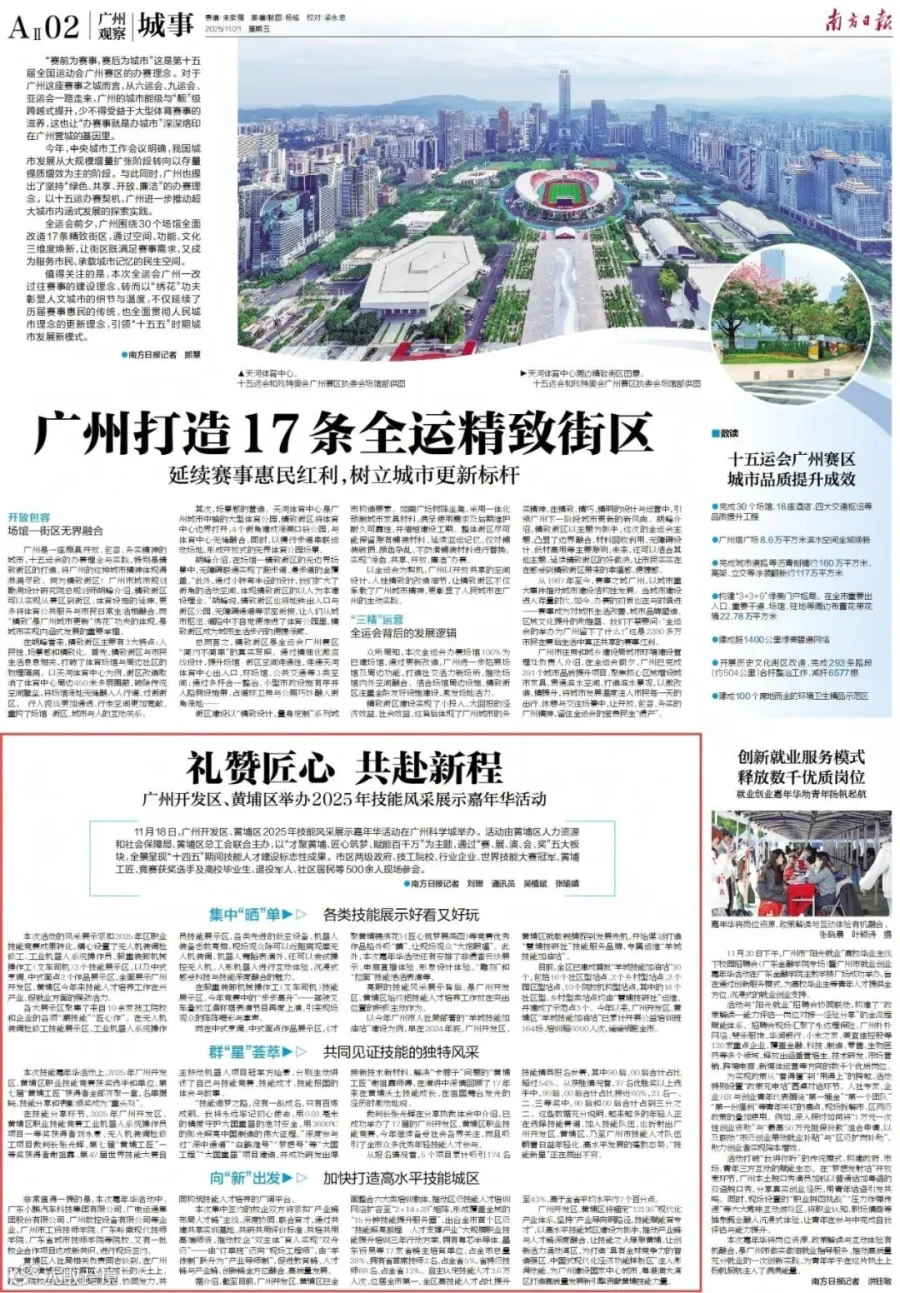 活动以“才聚黄埔、匠心筑梦、赋能百千万”为主题,通过“赛、展、演、会、奖”五大板块,全景呈现“十四五”期间技能人才建设标志性成果。市区两级政府、技工院校、行业企业、世界技能大赛冠军、黄埔工匠、竞赛获奖选手及高校毕业生、退役军人、社区居民等500余人现场参会。