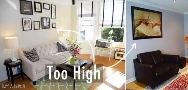 艺术装饰挂错了,就像是人戴错了假发一样的难看奇怪。很多人家中喜欢挂一些相框或是艺术作品,在悬挂的时候,其实不仅仅要看画风是否跟你的家具风格相配,还要测量装饰的大小。