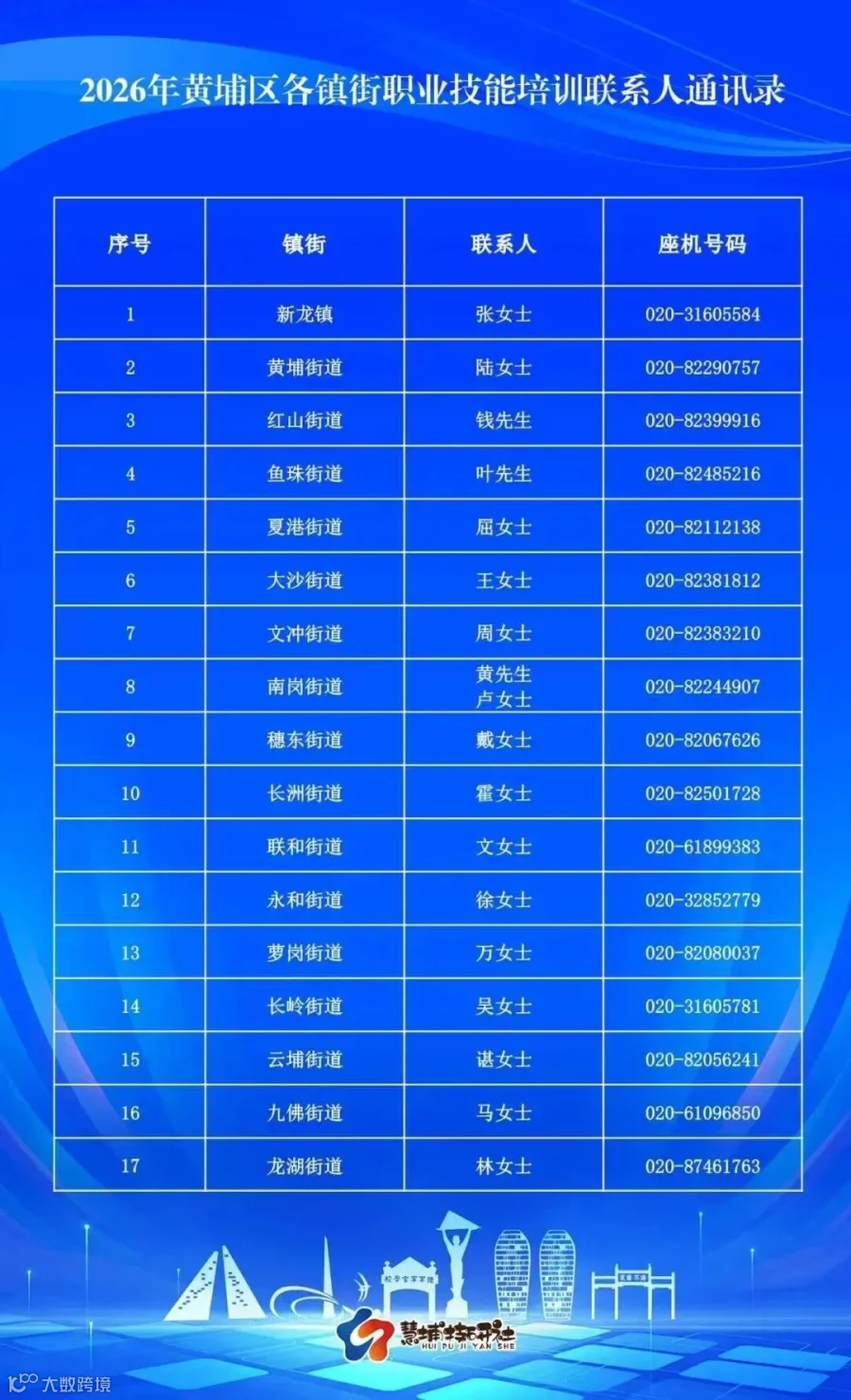 ▲上下滑动,查看2026年黄埔区各镇街职业技能培训联系人通讯录