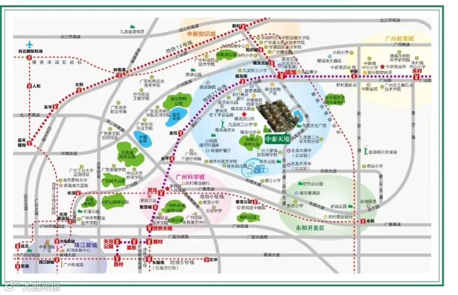 中泰天境花园地处黄金区位——山水新城核心区,享科学城、知识城、教育城千亿配套。坐拥交通枢纽——稀缺双地铁镇龙站上盖,是广州东唯一21号、14号双地铁品质社区,并规划建设镇龙立体式交通枢纽,将地铁、快速公路、公交、轻轨立体化链接,辐射广州东乃至珠三角地区,交通核心枢纽地位无与伦比。