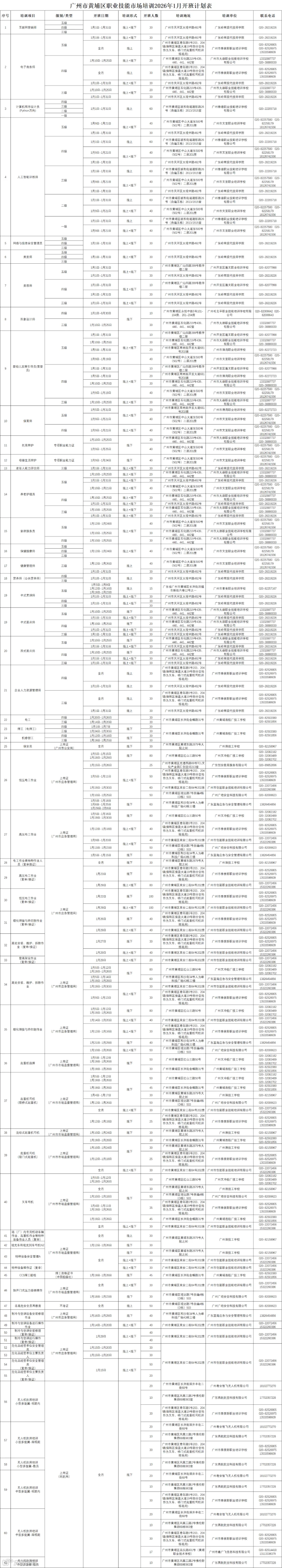 广州市黄埔区职业技能市场培训2026年1月开班计划表.xlsx
