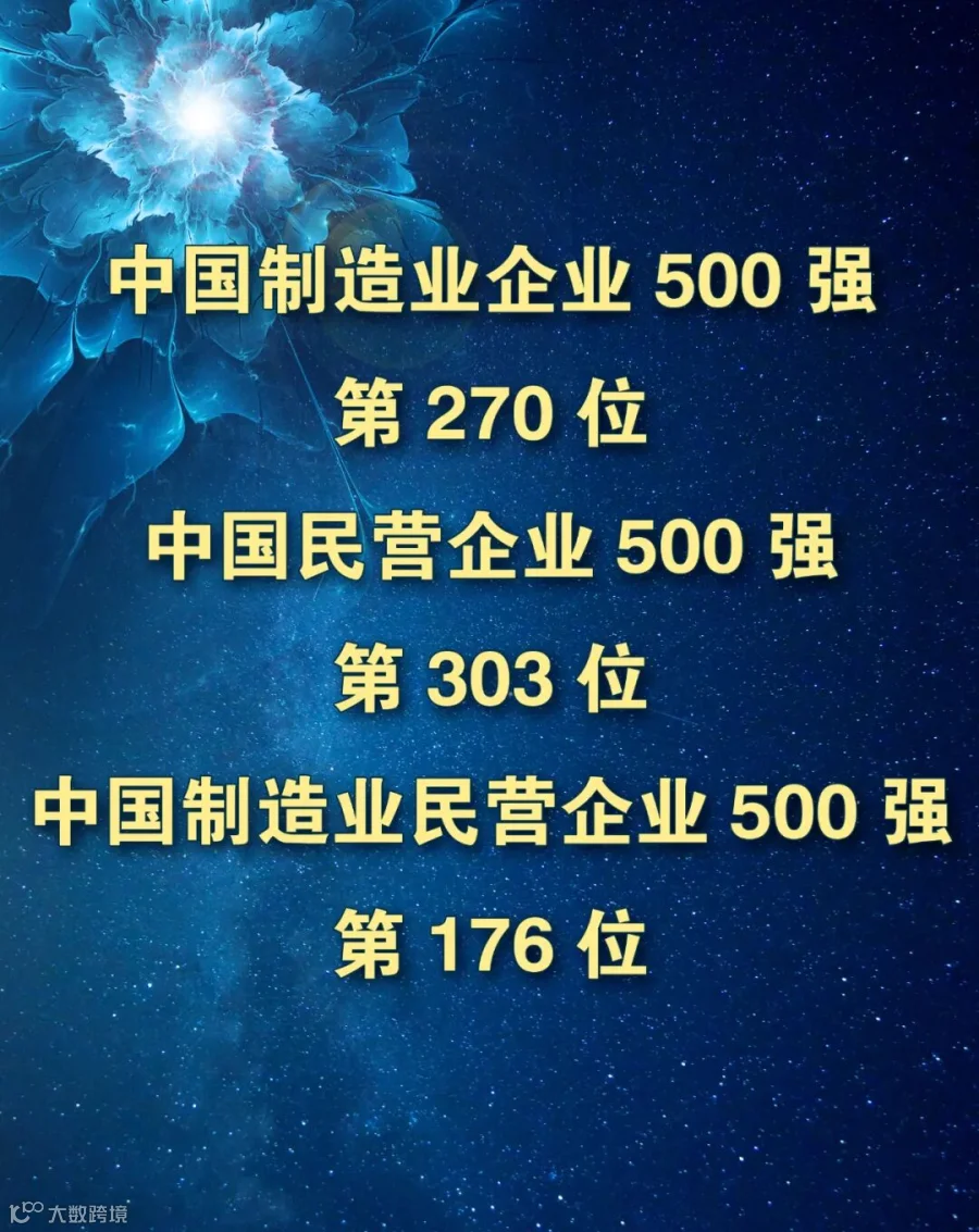 居第270位、中国民营企业500强第303位、中国制造业民营企业500强第176位。