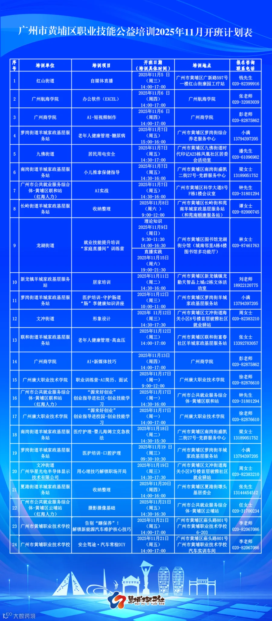 ▲上下滑动,查看黄埔区职业技能公益培训2025年11月开班计划表,培训安排最终以实际开展为准