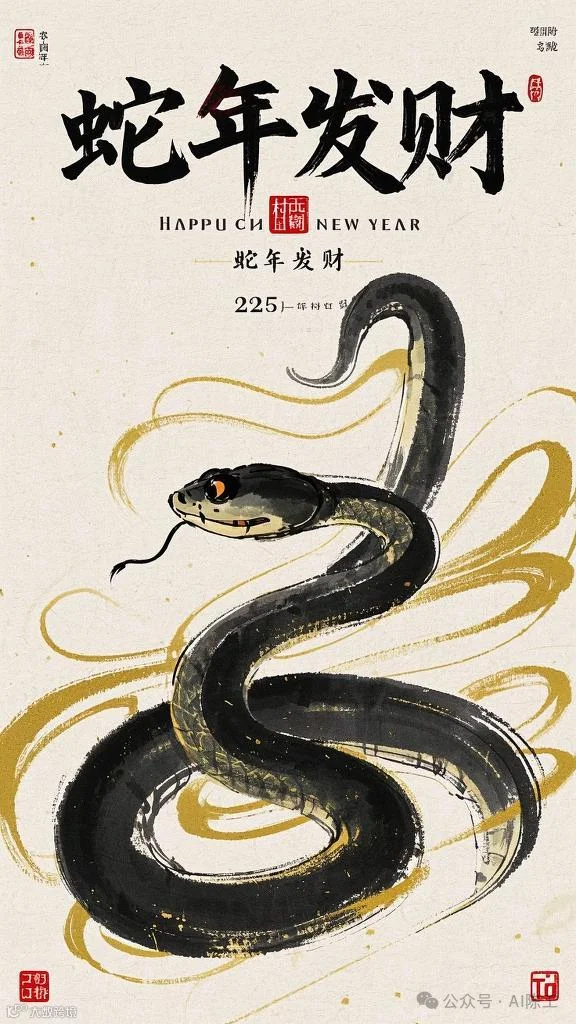 蛇年伊始展宏图,神蛇护佑福无边。