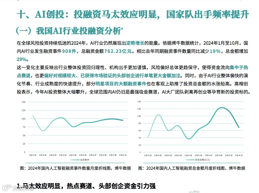 10.AI创投:投融资⻢太效应明显,国家队出⼿频率提升