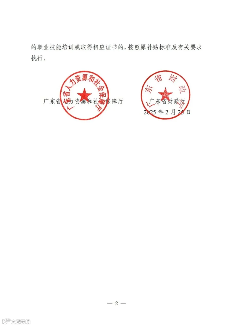 广东省人力资源和社会保障厅 广东省财政厅关于印发《广东省职业技能培训补贴(指导)标准目录(2025年版)》的通知(粤人社发〔2025〕5号).pdf