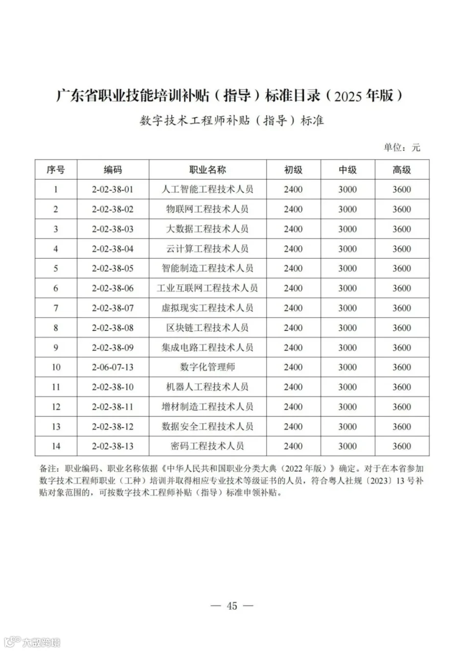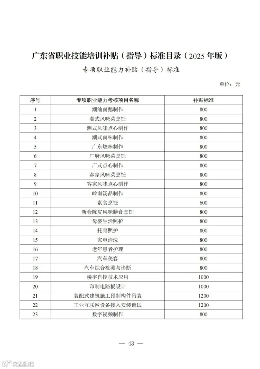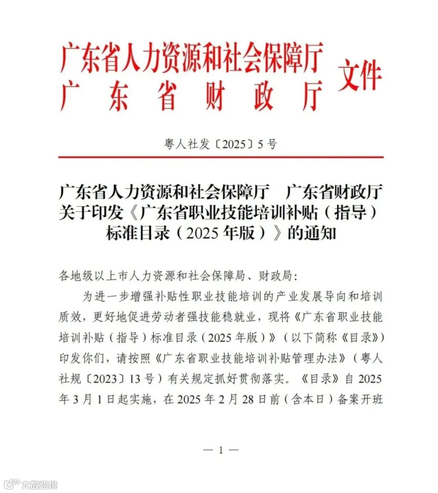 关于印发《广东省职业技能培训补贴(指导)标准目录(2025年版)》的通知(粤人社发〔2025〕5号)