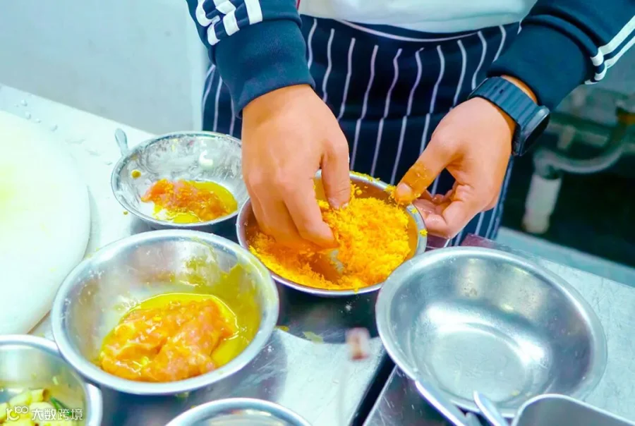 随后,谭老师化身“粤菜师傅”,在灶台前大展身手,亲自示范了多道经典粤菜的制作。其手法娴熟,刀工精湛,火候精准调控,调料添加恰到好处,每一个步骤都伴随着老师详细的解说。学员们围在灶台旁,目不转睛地观看老师的每一个动作,不错过任何一个细节,全身心地学习粤菜烹饪方法技巧和感受着粤菜烹饪的魅力精髓。
