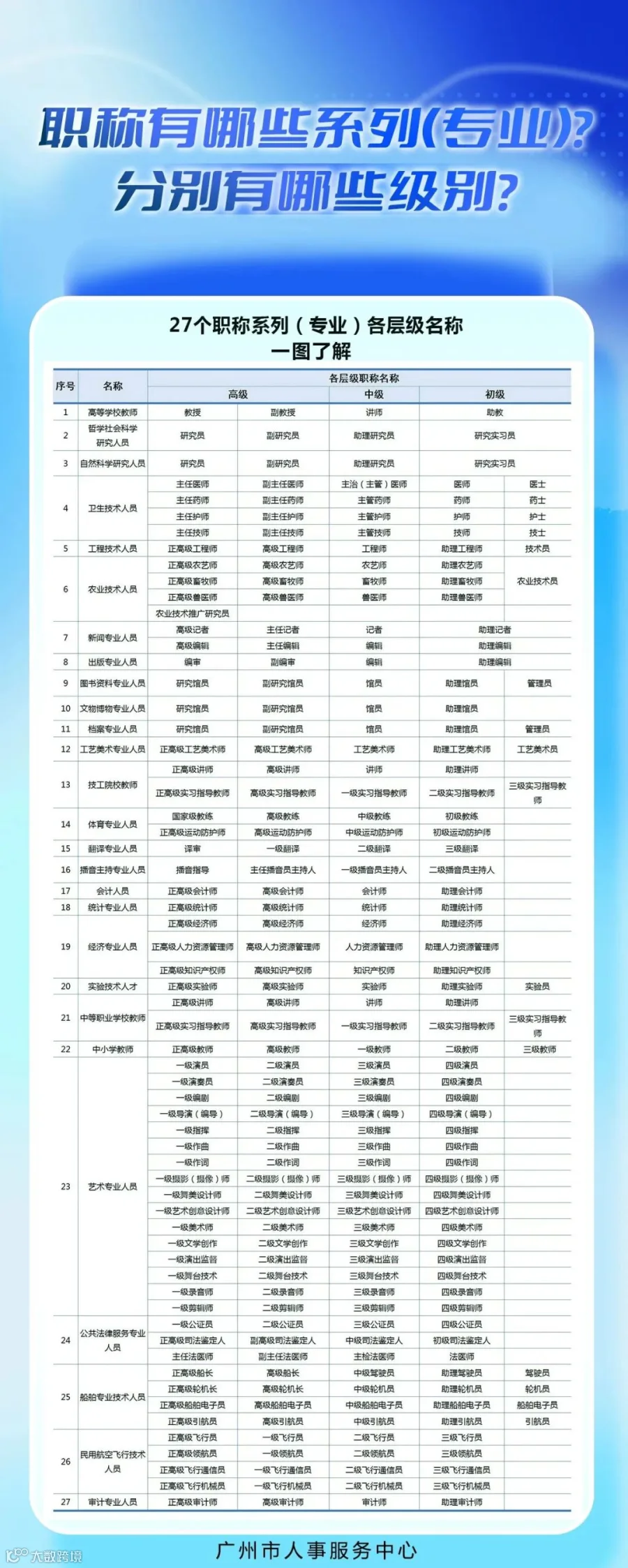 职称有哪些系列(专业)?分别有哪些级别?