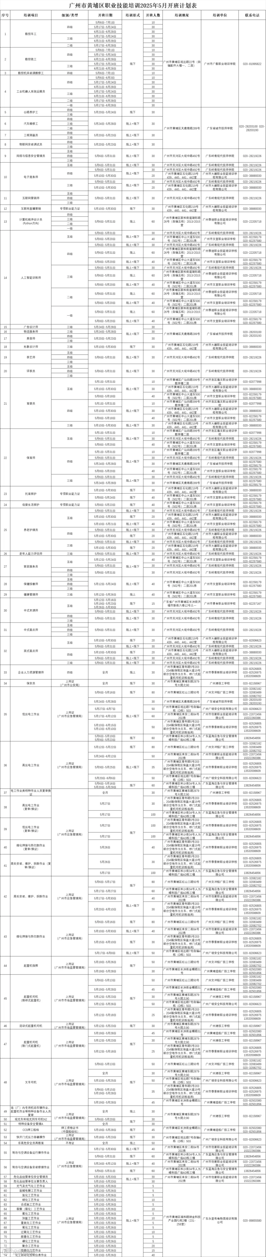 广州市黄埔区职业技能培训2025年5月开班计划表