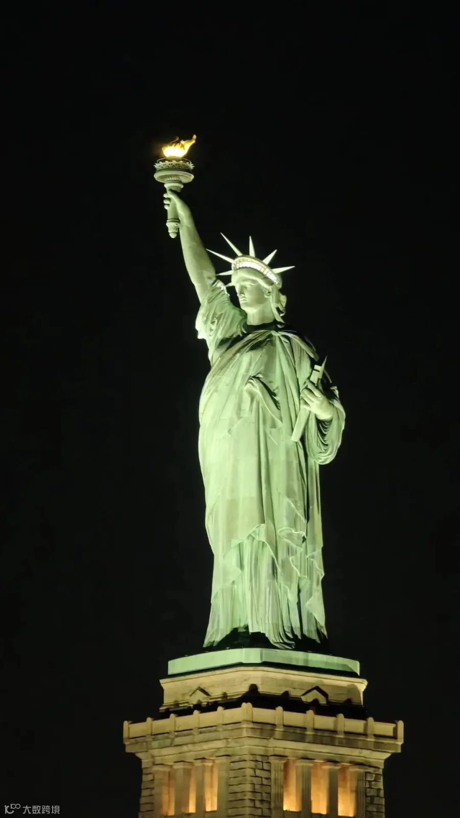 晚上,我们坐船去看了自由女神像。
