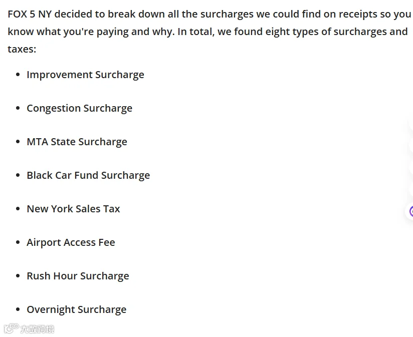根据美国媒体FOX 5 NY梳理,他们总共找到了8种附加费和税种。看图。