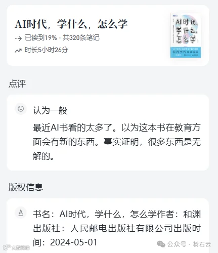 记得9月份的时候看了一本《AI时代,学什么,怎么学》,看之前还蛮有期待,但大概看了一下后,里面讲的东西,大部分都太熟悉了。