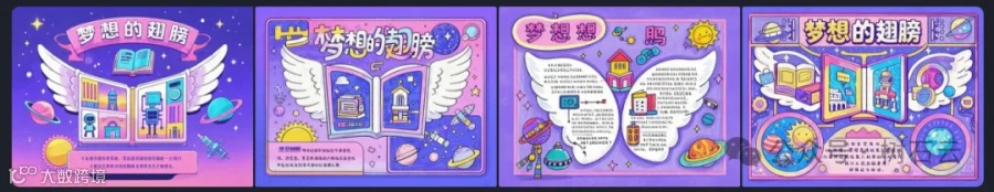 以下是三个优化后的高质量手抄报设计方案提示词,每个方案都旨在通过即梦AI绘画工具捕捉女儿的梦想: