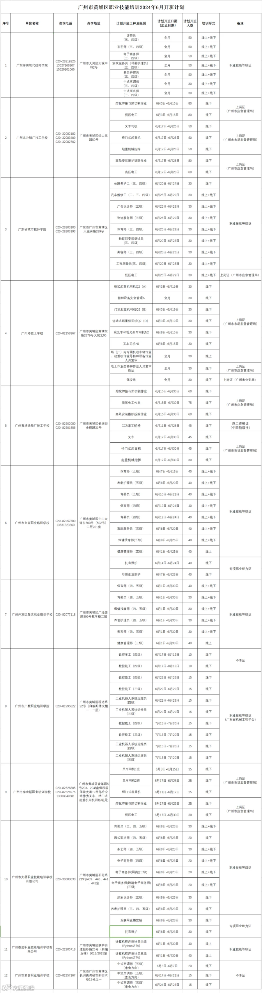 广州市黄埔区职业技能培训2024年6月开班计划通知