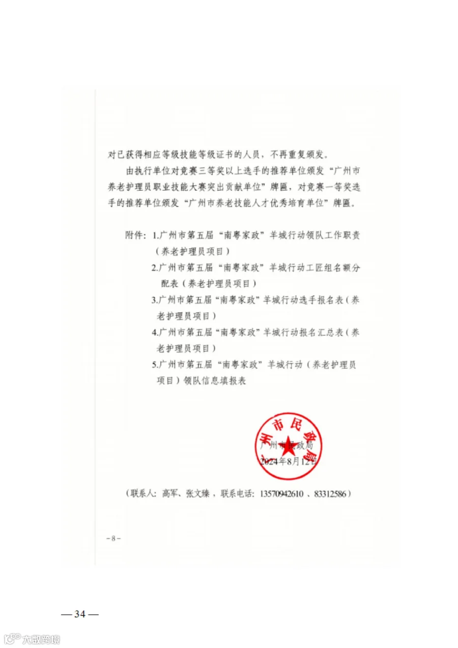 导读:关于转发广州市第五届“南粤家政”羊城行动技能竞赛相关文件的通知
