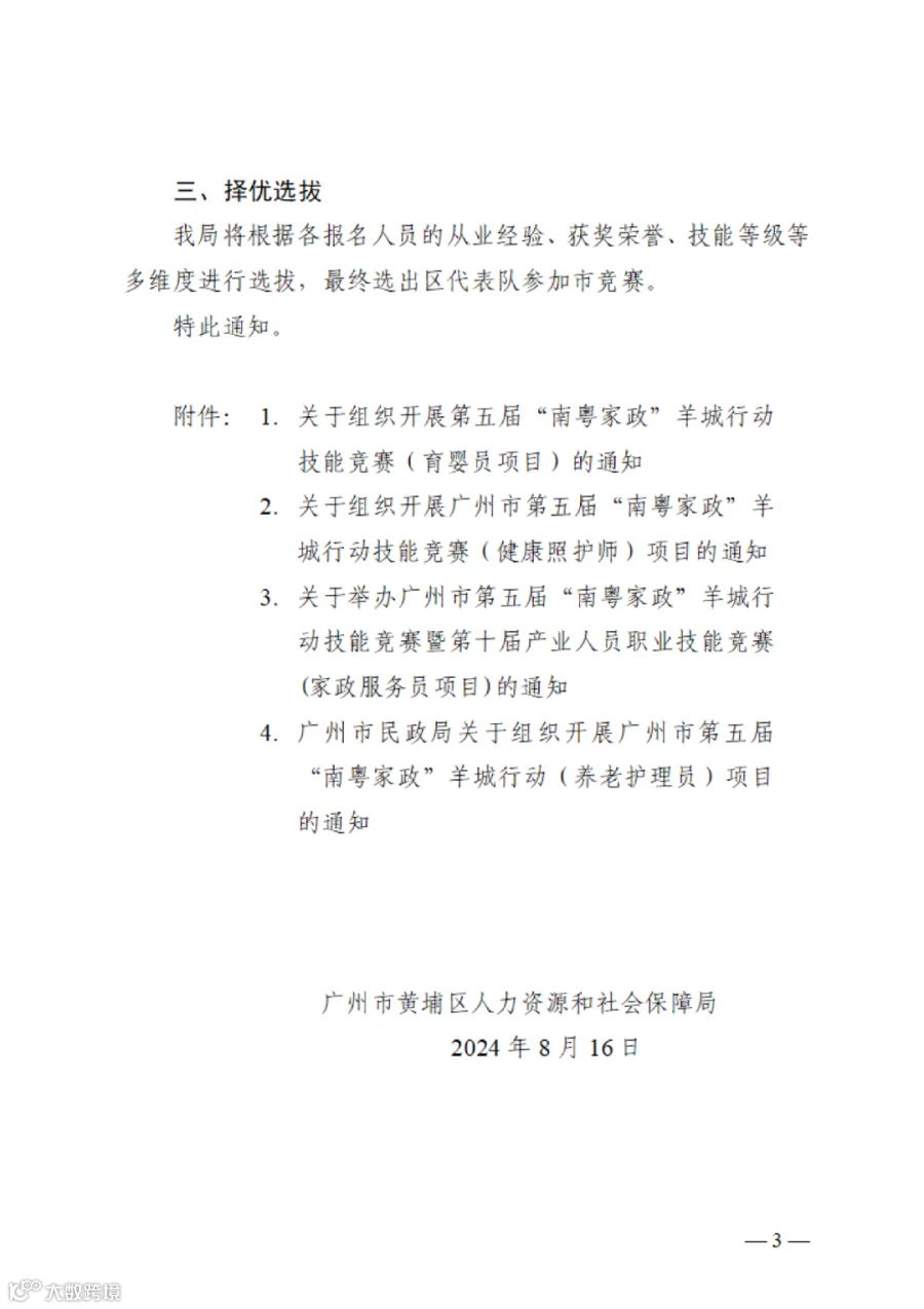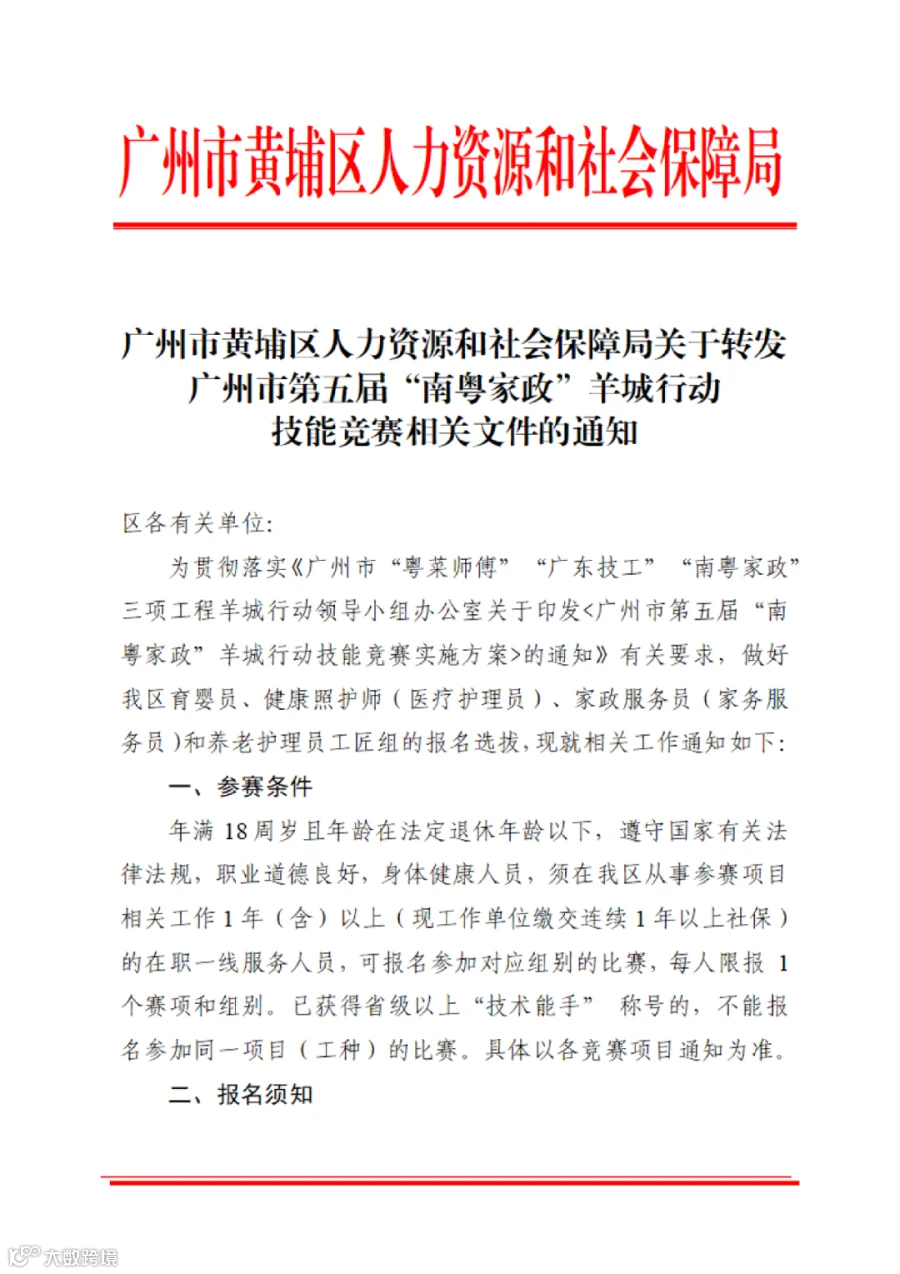 广州市黄埔区人力资源和社会保障局关于转发广州市第五届“南粤家政”羊城行动技能竞赛相关文件的通知.pdf