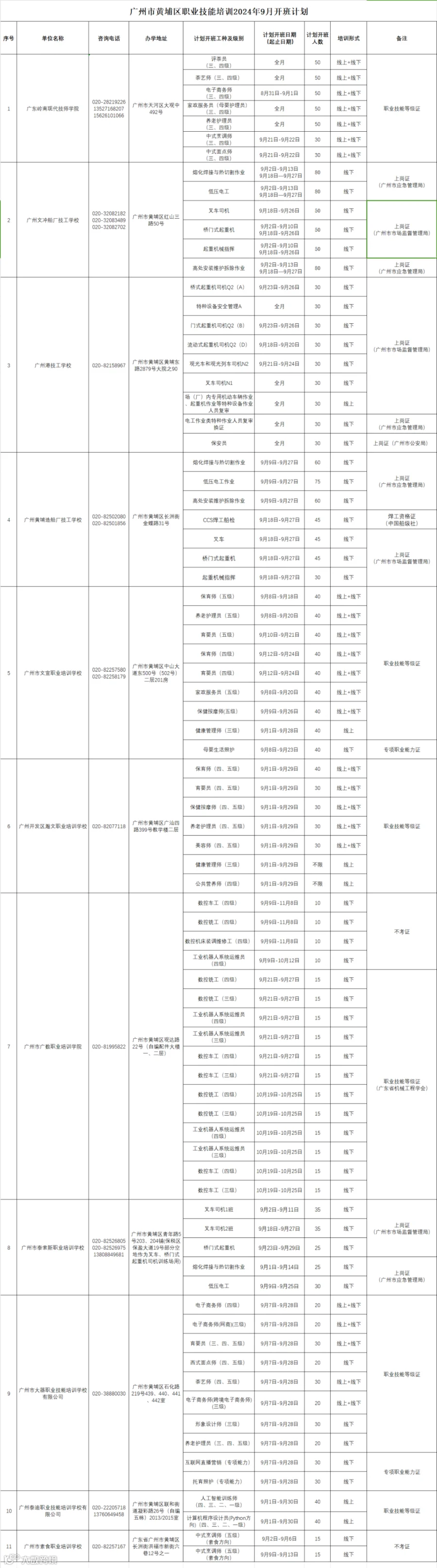 广州市黄埔区职业技能培训2024年9月开班计划通知
