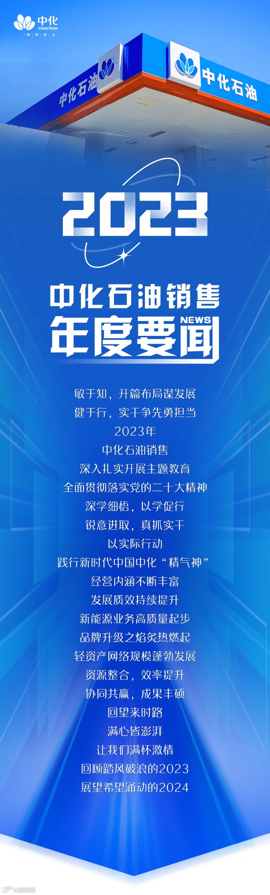 2023年,中化石油销售持续推动成品油销售网络全国布局。在华北地区,正式启动对中化工成品油销售业务的整合工作,成立整合工作小组及华北分公司筹备组,全面摸底山东三家炼厂的成品油销售业务以及山东、东北地区的油站零售业务。7月初整合工作顺利完成后,中化石油销售的上下游资源进一步扩大,成品油销售规模大增,北方地区油站网络布局日趋完善,品牌形象和市场影响力再获提升。