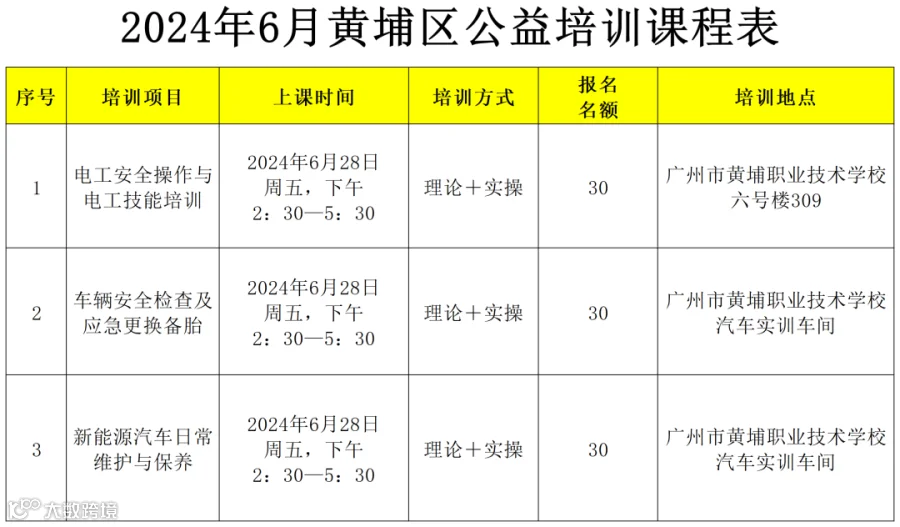 为优化区域人才培养模式,强化职业技能培训公共资源供给,更好满足区内劳动者参加职业技能培训需求,助力企业建设高技能人才队伍,促进我区经济社会高质量发展,黄埔区人社局将联合黄埔职业技术学校面向社会推出系列免费公益培训课程,欢迎我区广大劳动者免费报名参与。