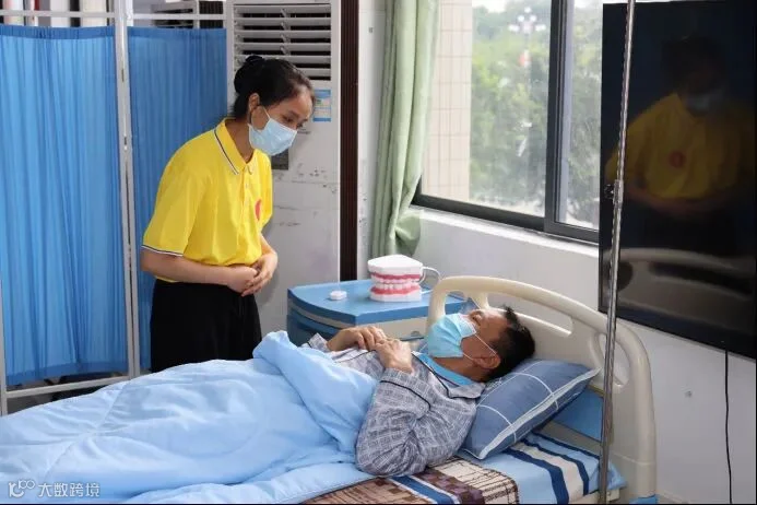 赛场上,参赛护理员面带笑容,帮助瘫痪老人更换衣物,在多数人看上去简单的操作,其实大有学问——护理员要根据季节关上门窗,调节室温不低于22℃,然后洗净擦干并温暖双手,掀开盖被,协助老人侧卧于健侧,穿好患侧上肢衣服的衣袖,其余部分平整地掖于老人身下,协助其平卧,从其身下拉出衣服,再穿健侧上肢衣服。整理拉平衣服,扣好纽扣,协助老人躺卧舒适,盖好被子,整个过程流畅、熟练。