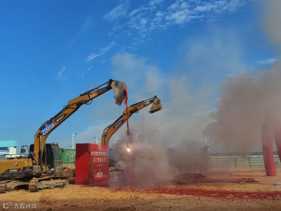 15点吉时到,随着主持人的祝词,嘉宾们一同完成开工奠基仪式,同时,现场的工程车摆动起机械臂,鸣着喇叭,礼炮齐放,仪式圆满成功!