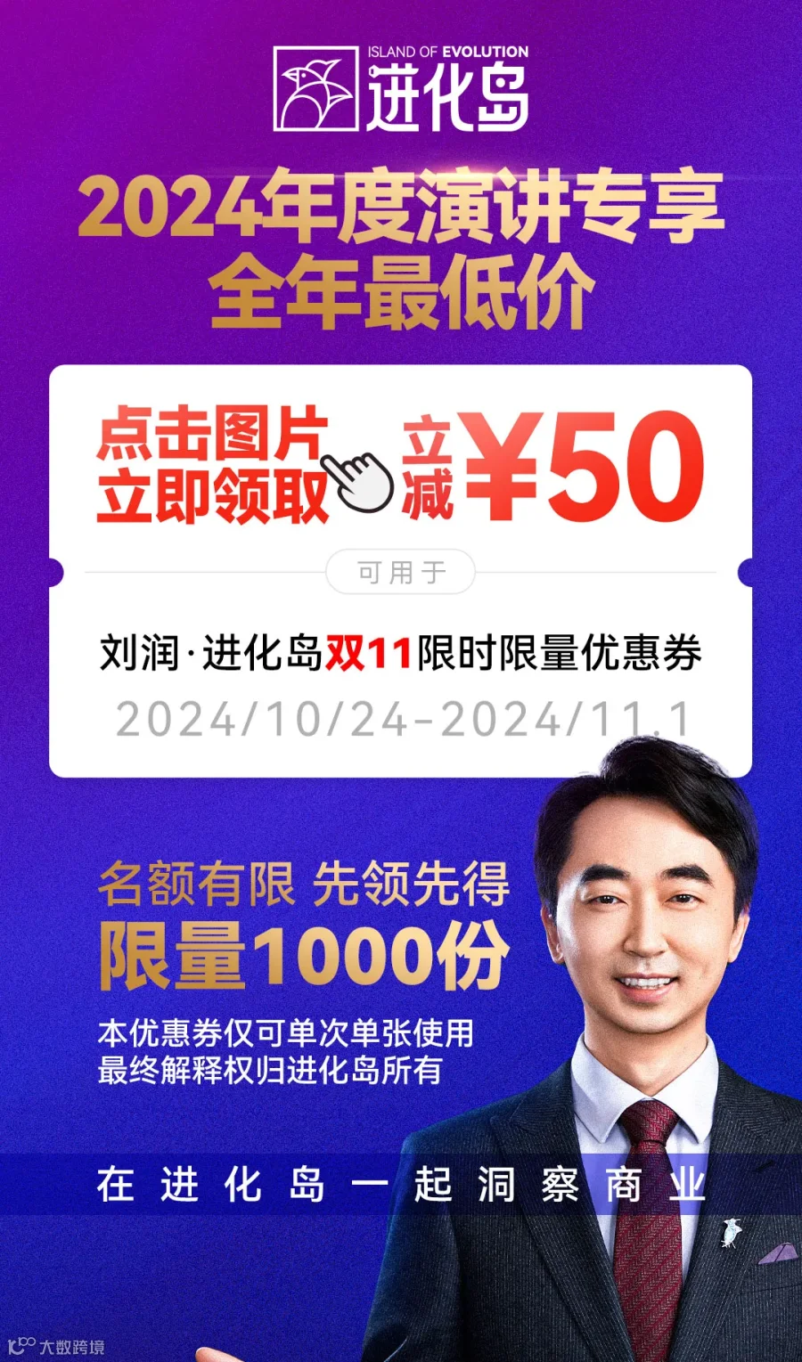10月24日至11月1日,我们将在“刘润·进化岛”上,举行“2024年度演讲专享低价”的活动。