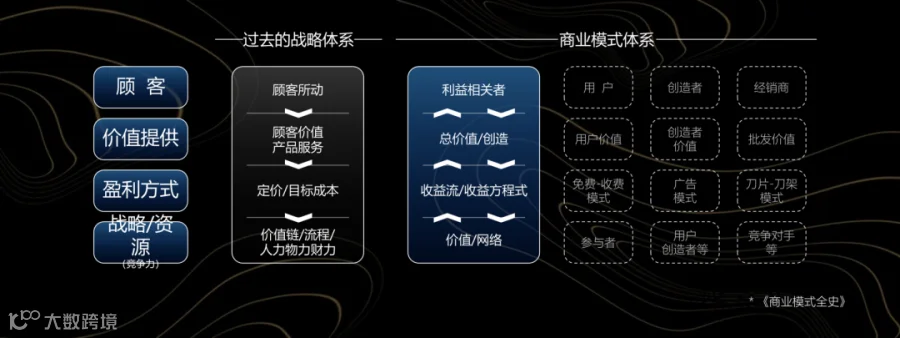 是不是和3要素模型基本一样,只是把3要素模型里的客户价值(你为什么人提供什么价值)分别拆成了客户(顾客)和价值(价值提供)。