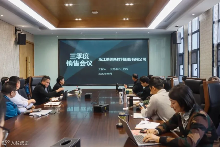2022年10月13日,浙江纳美新材料股份有限公司2022第三季度销售总结暨第四季度销售规划会议正式召开。纳美新材董事长赵磊先生、生产中心、研发中心、财务及全体营销精英共同参与本次会议,全面部署,全力冲刺第四季度。会议由营销中心史炜先生主持。
