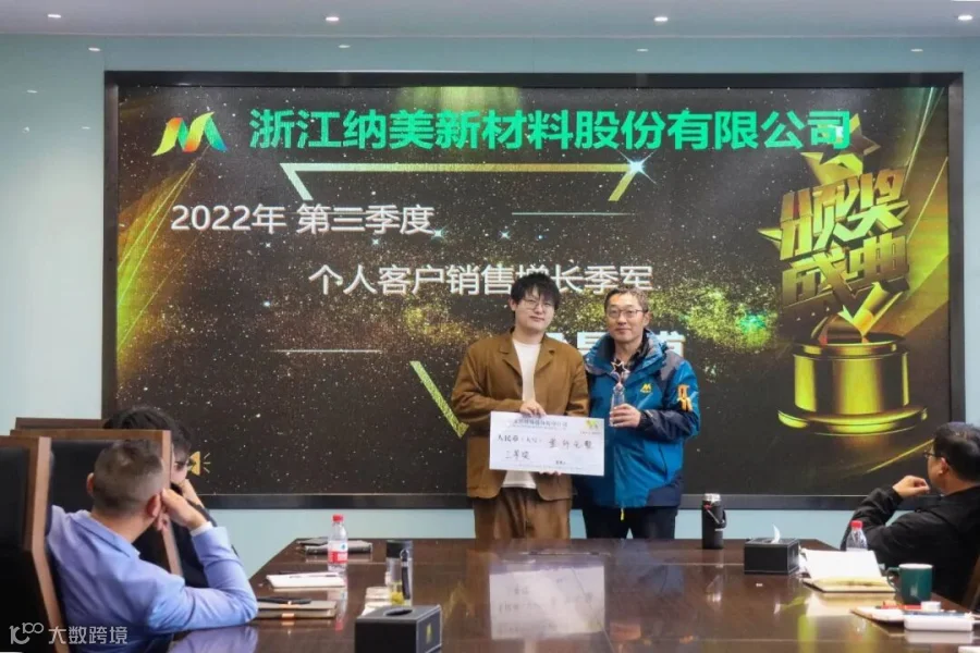 纳美新材对2022年第三季度工作中做出突出成绩的优秀销售精英给予表彰,并颁发了证书及奖金。道阻且长,行则将至;行而不辍,未来可期。