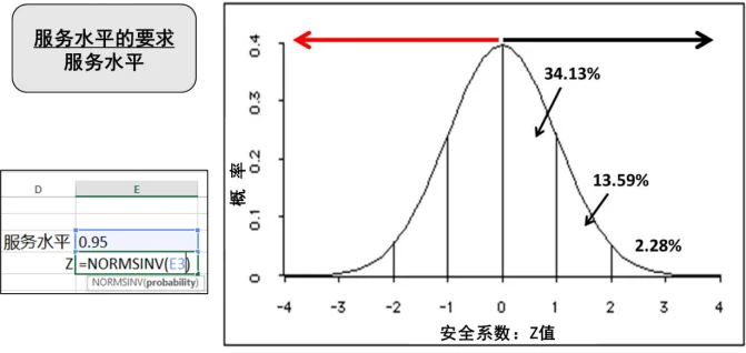 直观地说,服务水平可以折算成一个安全系数(Z值),两者是一对一关系。服务水平越高,这个系数越大,反之亦然,不过两者不是简单的线性关系。这就是在量化服务水平的要求。