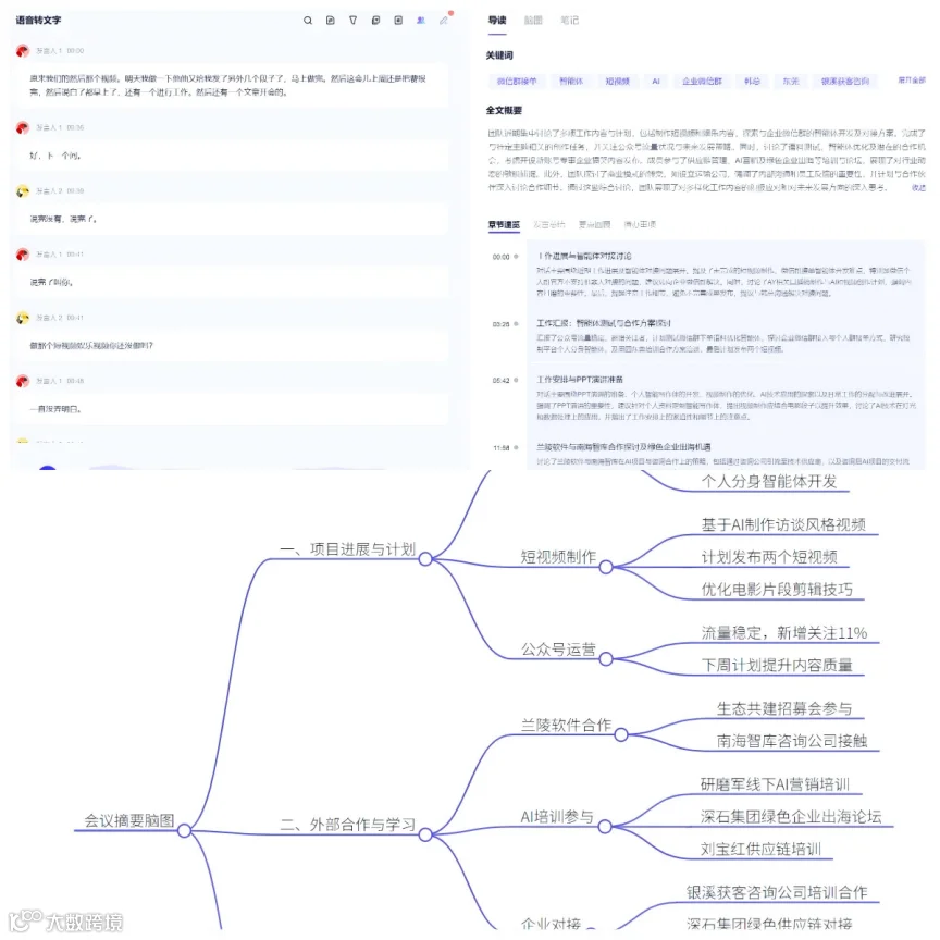 • 办公场景:会议记录、报告、总结 → 输出待办+脑图
