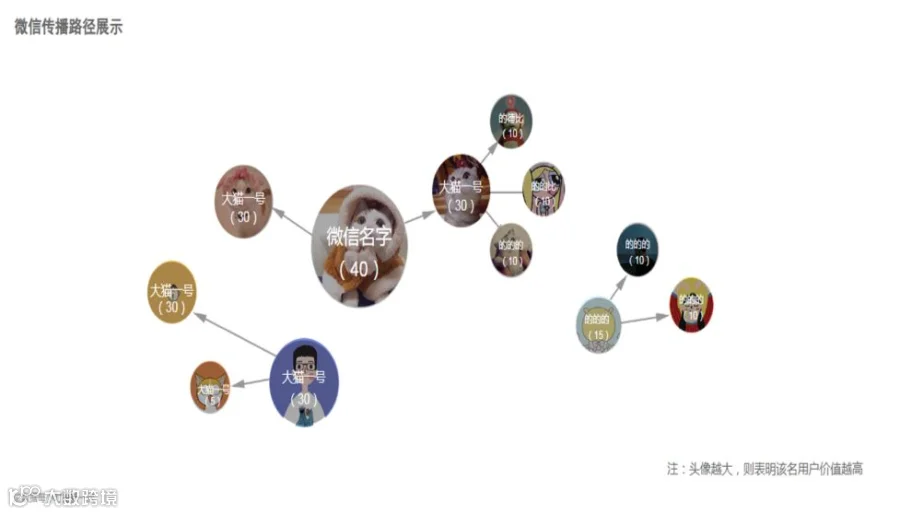 通过分析传播路径,寻找活动传播路径中的关键用户,从而针对关键用户进行精准营销。