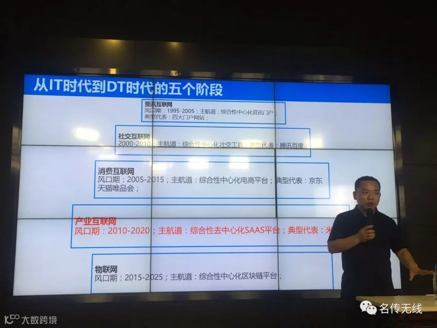 从IT时代到DT时代的五个阶段的变革,王敬华先生指出: