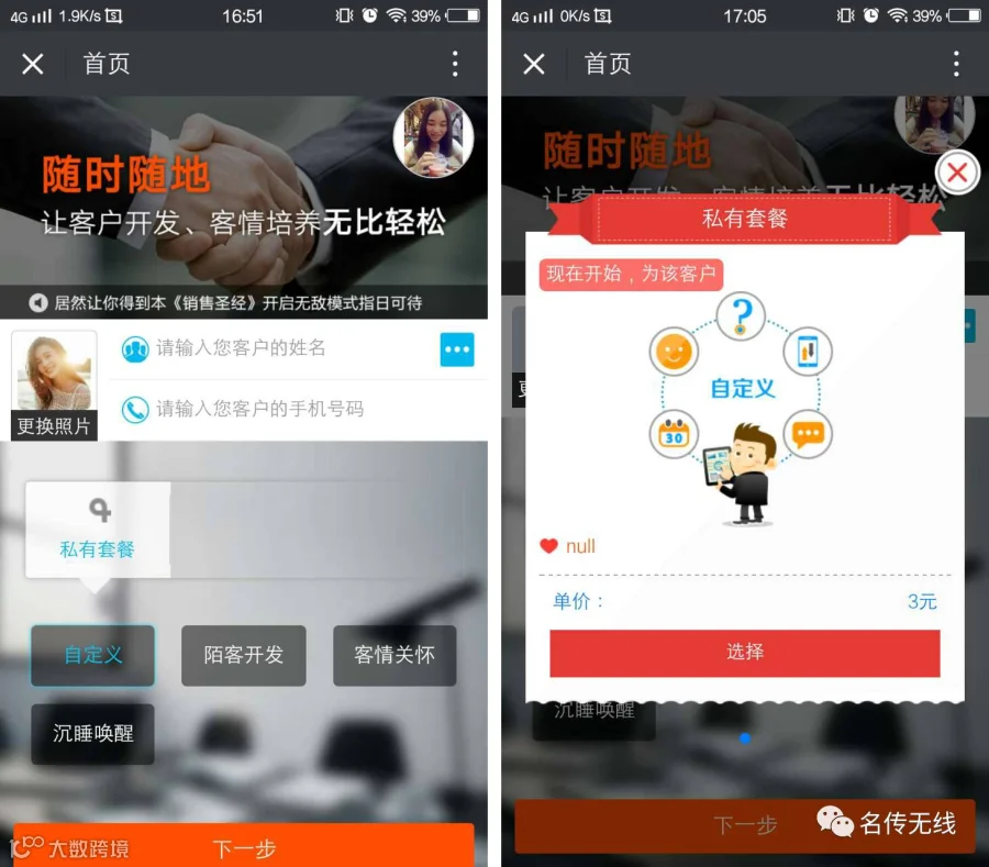 1.自定义套餐,定制个性化的套餐需求
