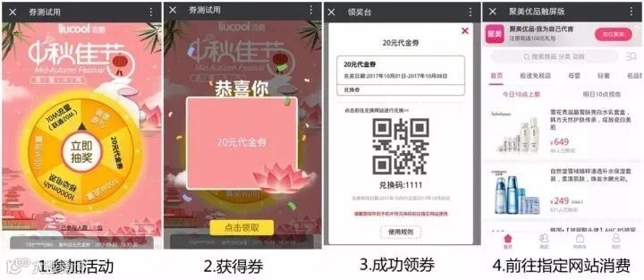 品牌或商户自有电商渠道,提供的券已设定好对应的兑换码。用户获得券后前往指定的电商网站或兑换礼品的网站,即可凭兑换码自行使用。如聚美优品优惠券,爱奇艺VIP会员7天兑换券等。