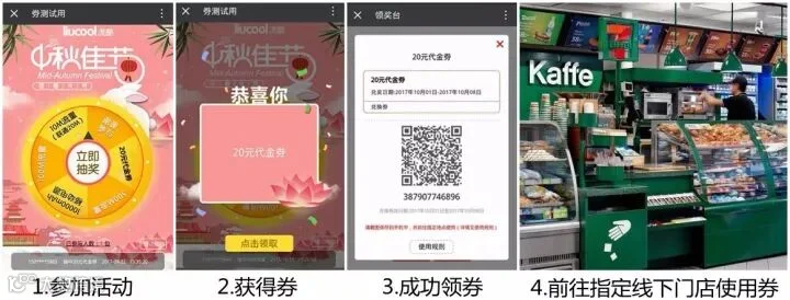 领奖后,券的使用必须前往线下指定地点由专人进行核销,如新店折扣券等。