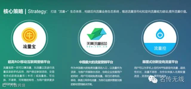 【名传无线成立9年来,专注致力于整合无线产品及新媒体营销服务,为企业提供高效的数字营销解决方案,以无线产品为驱动力的移动数字营销机构。充分发挥“无线+4A“的独特优势,帮助企业达到品牌传播、用户运营及价值转化的营销目标。成功举办了中国首届手机流量营销论坛,出版了陈志波等编著的国内第一部手机流量营销专著《手机流量营销》】