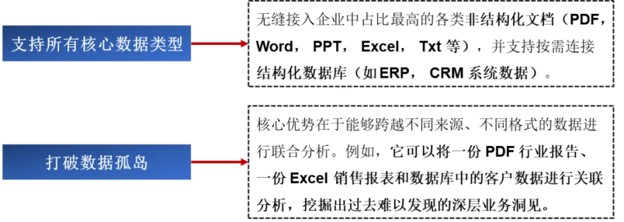 (3)它既能当 “外部专家”—— 查外部信息时能灵活连互联网调资料,也能当最懂业务的 “内部顾问”—— 能对接公司私有知识库(比如内部 SOP、产品文档),既保信息安全,又能给精准建议。