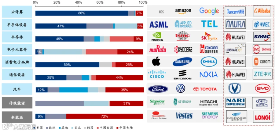 除了美国,全世界就中国拥有完整的 AI 产业链。美国的优势集中在基础大模型、云计算这类软件领域,中国则在通信设备,以及智能手机、电动车这些重要终端设备上有很强的竞争力。