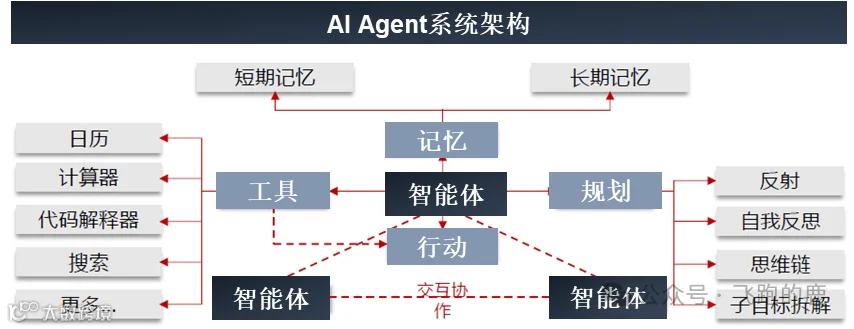 整个过程就像一个靠谱的助理在干活:先在心里盘算步骤(思考),然后去调用订票软件、刷航空公司官网、填表单(行动),要是发现某趟航班没票了,还会回头看看是不是能调整出发时间,再重新查(观察反馈),直到把机票酒店全订好,不用你中途盯进度。简单说,以前的 AI 是 “你说一步,它做一步”,现在的 AI 智能体是 “你说要啥结果,它自己搞定全过程”。