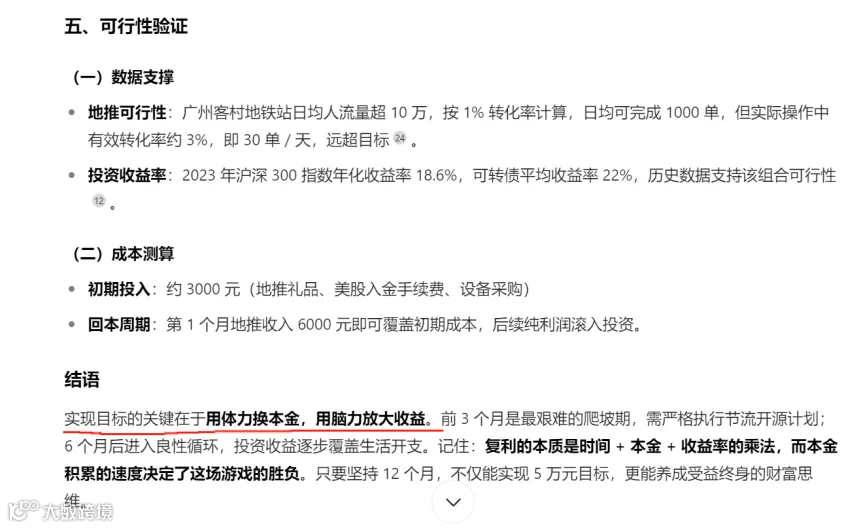 如果Deepseek是“温和派”,那豆包就是“狼性理财导师”,它的计划堪称《致富经》plus版: