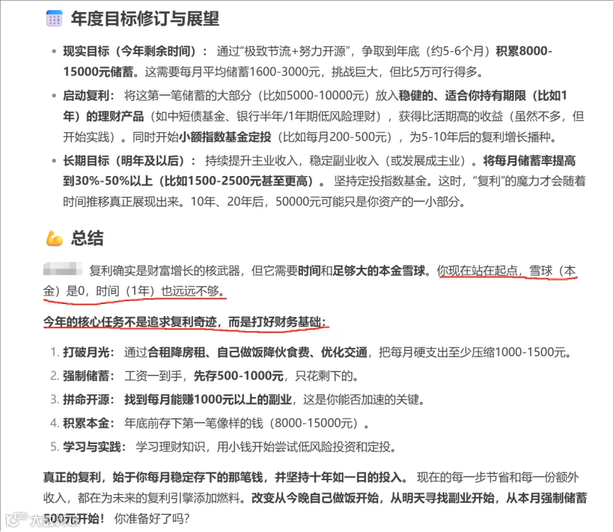 这位AI老哥一上来就泼冷水:“兄弟,复利是‘滚雪球’,但你连雪都没有,滚个寂寞啊?”