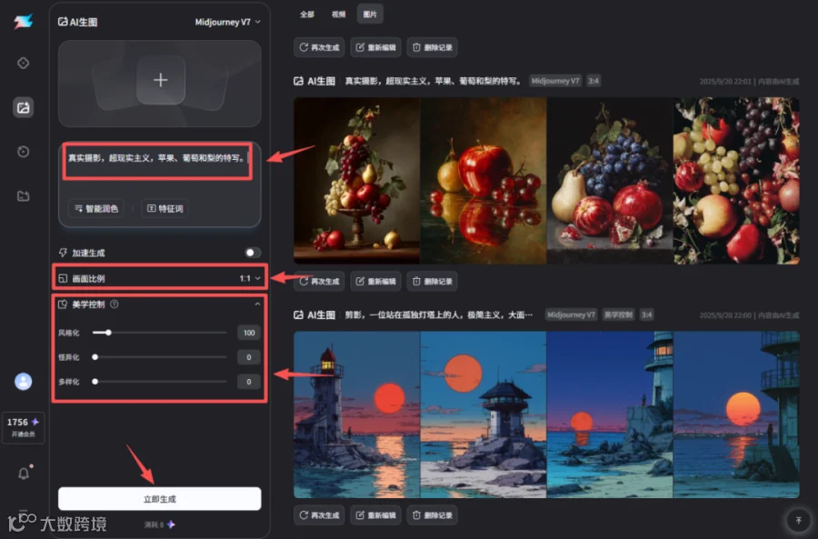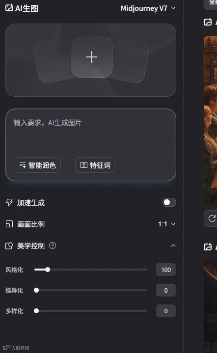 你敢信吗?他们家的AI生图居然可以直接使用Midjourney V7,不用魔法!不用魔法!这可是Midjourney啊,所有设计师都梦寐以求的顶级生图模型。