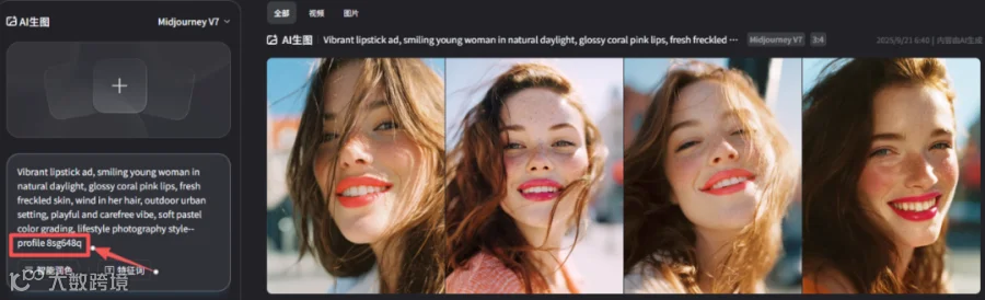 比如这个写实风格代码“--profile 8sg648q”,直接输入就能生成。