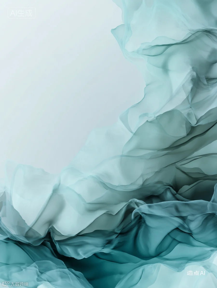 海报,流体渐变质感,极致抽象,铺满,淡淡蓝绿渐变色背景,低饱和度,缥缈,海报,冲击力,先锋艺术精致设计。极致简约、极致构图,大师作品。