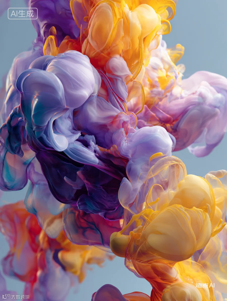 壁纸,CGI 数字艺术,抽象,多巴胺,流动,半透明,雾气,渐变,流畅,渲染,色彩淡雅,干净通透。