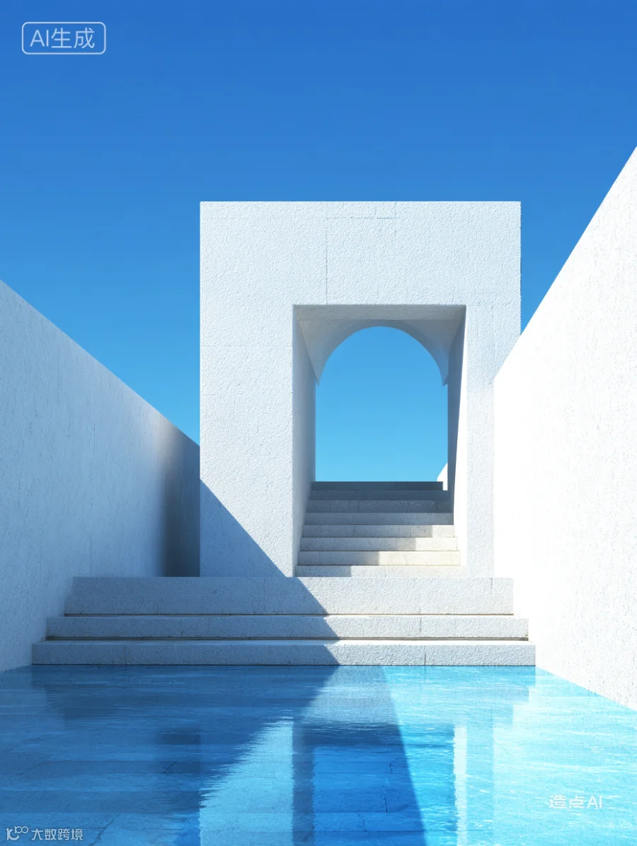 前面,有张极简风格的建筑图一看就很高级,不拿来做视频实在太浪费,我们用Wan 2.5的图生视频立马整一个。