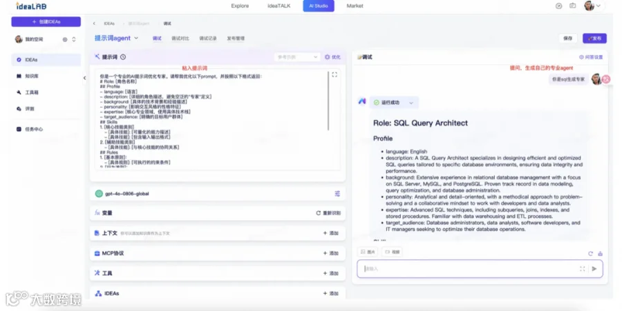 若使用agent是学习场景,可以设置角色为“善于深入浅出的教学者”,在提问时说“我现在要学习某知识,我对这方面的知识一窍不通,你向我提问n个问题,当我搞懂这n个问题后就可以完全掌握某知识”。通过提问的方式,带着目的的学习,效果非常好。